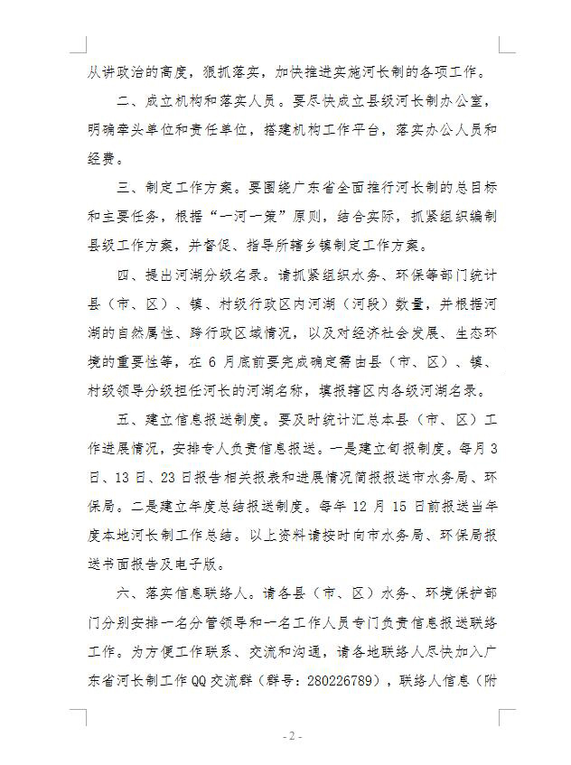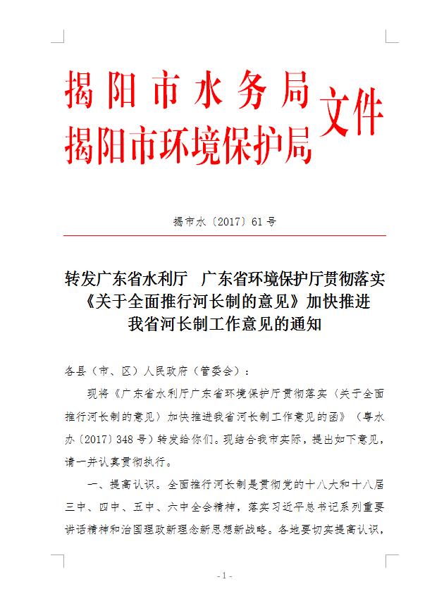 广东省环境保护厅贯彻落实《关于全面推行河长制的意见》的通知