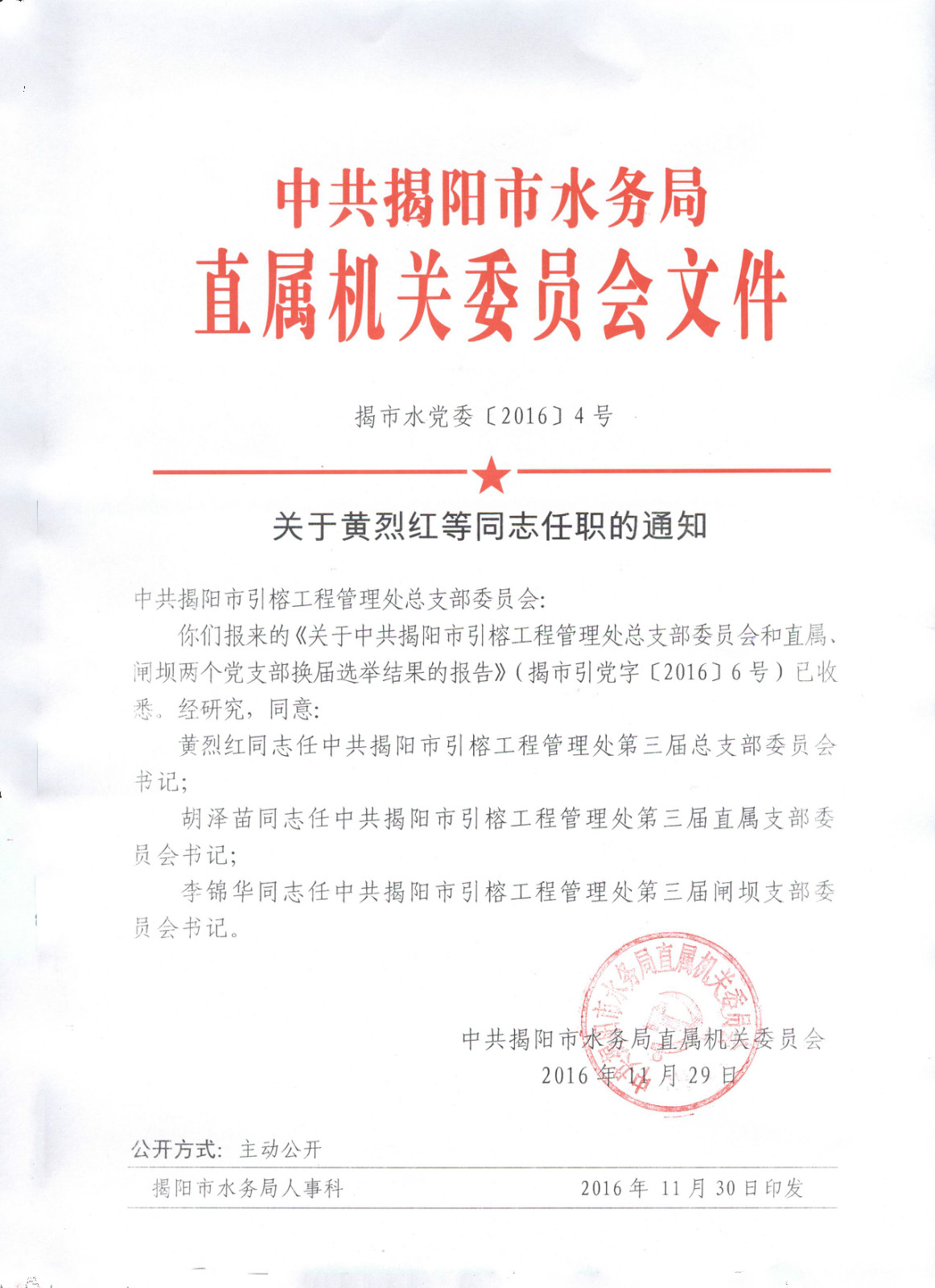 关于黄烈红等同志任职的通知