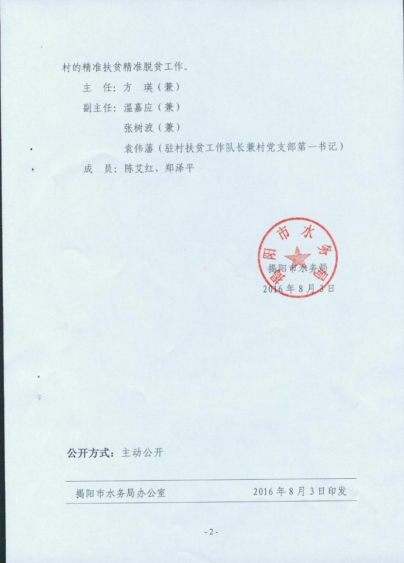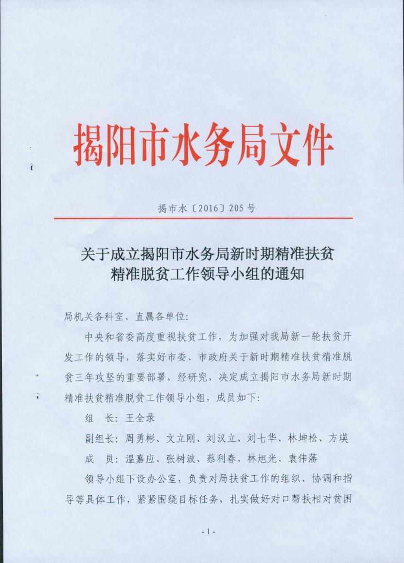关于成立揭阳市水务局新时期精准扶贫精准脱贫工作领导小组的通知