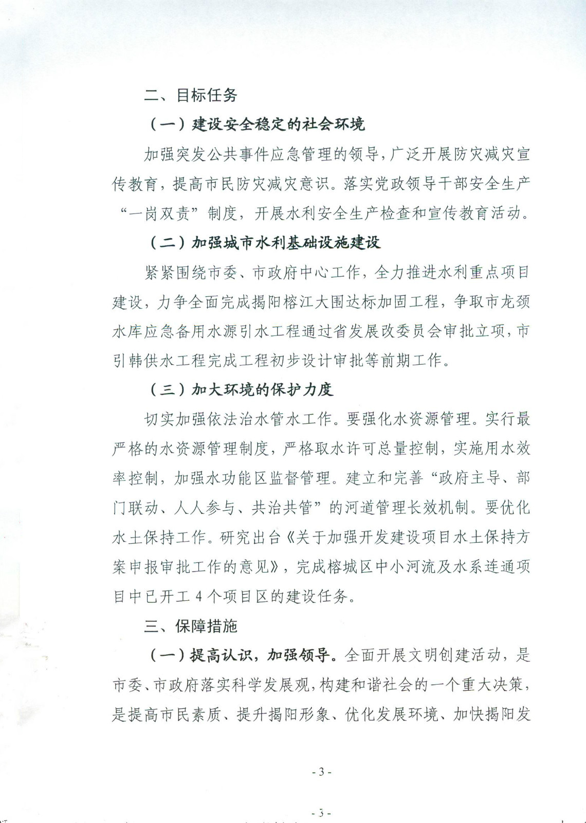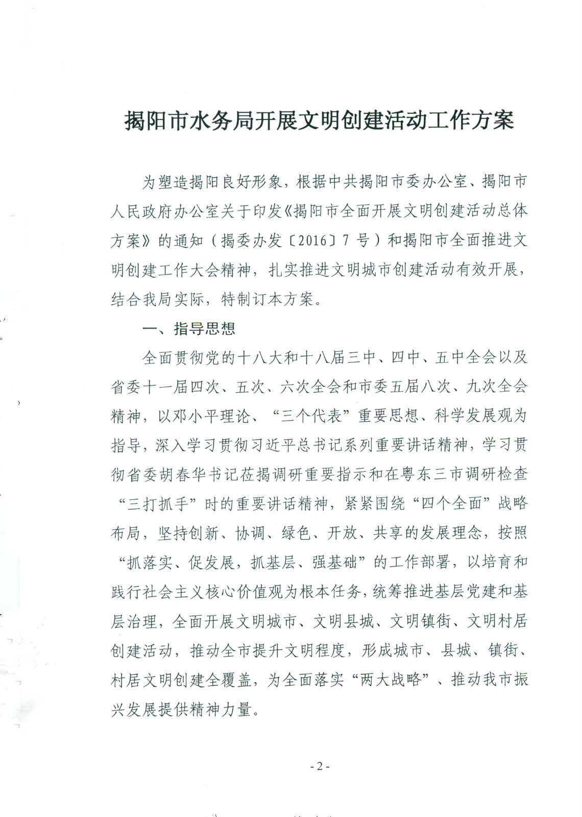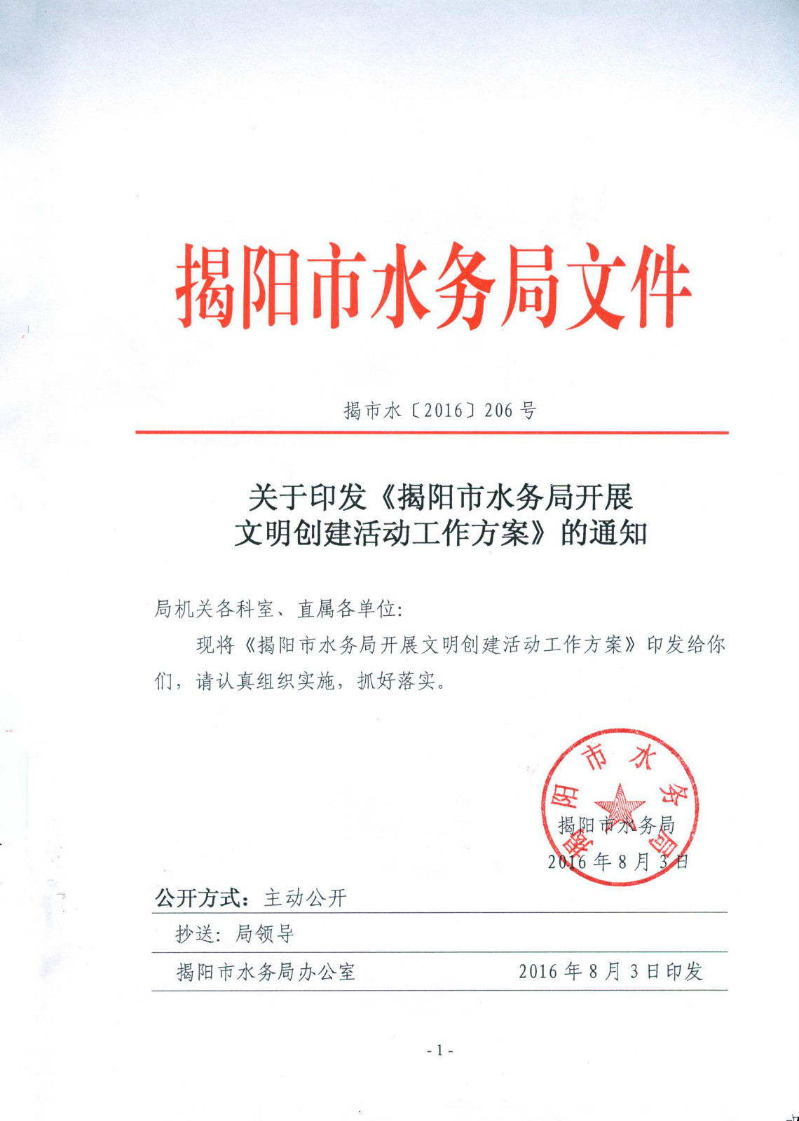 关于印发《揭阳市水务局开展文明创建活动工作方案》的通知