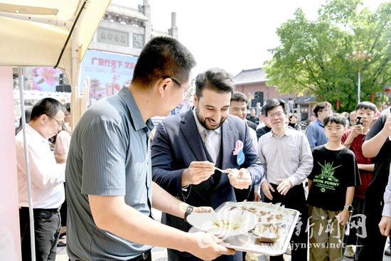 外籍美食博主“老王在中国”在活动现场品尝揭阳特色美食。郑楚藩 摄