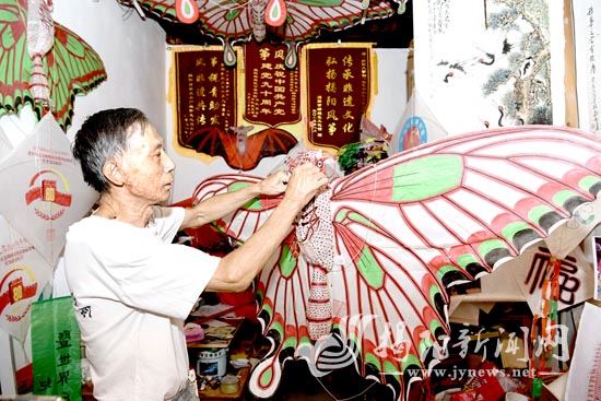 薛喜乐几十年放风筝、做风筝、琢磨风筝,乐此不疲。