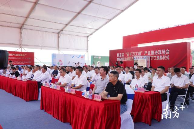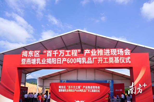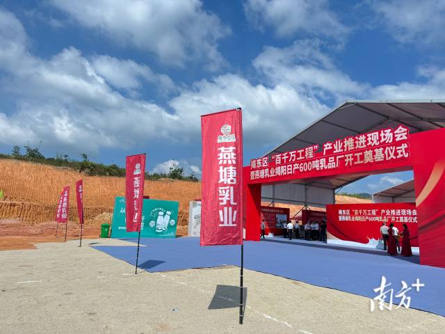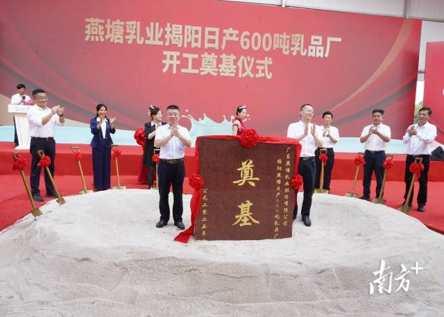 10月16日上午,揭阳市揭东区“百千万工程”产业推进现场会暨燕塘乳业揭阳日产600吨现代化乳品厂开工奠基仪式在揭阳市国家级揭东经济开发区举行。广东省农垦集团公司(农垦总局)党委书记、董事长、局长冯彤,党委委员、副总经理、副局长莫仕文,揭阳市委常委、纪委书记梁博科,副市长许剑芒,中国奶业协会副会长兼秘书长刘亚清等领导以及有关部门、项目代表出席活动。