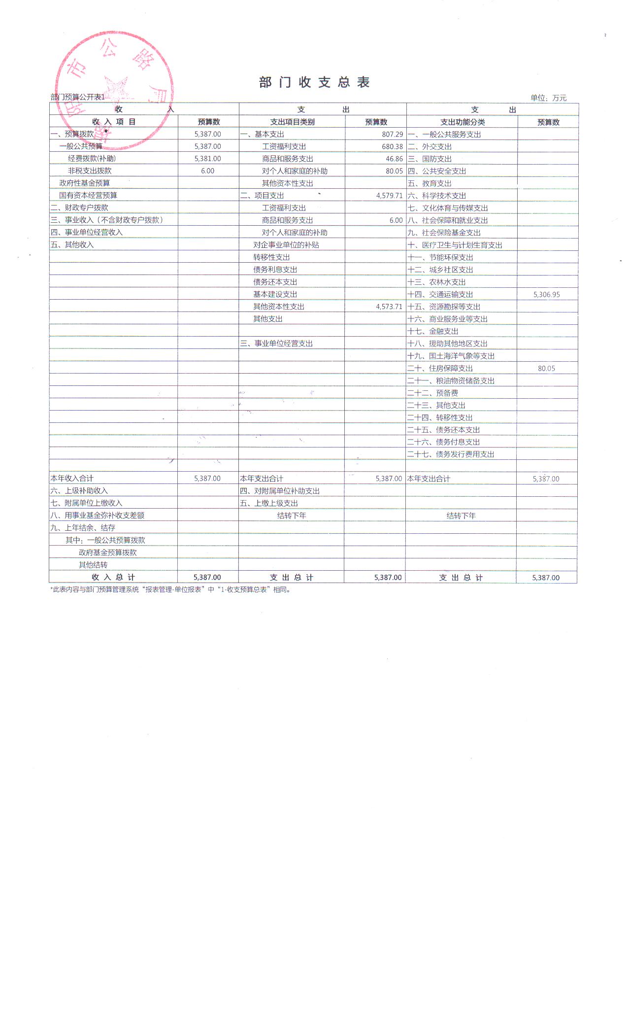 揭阳市公路局2017年部门收支总表