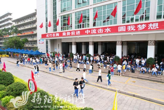 高考首日,揭阳第二中学考点考生有序进入考场。林洁松 摄