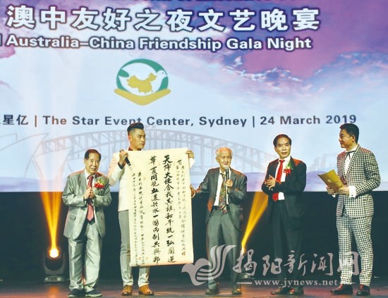 2019年,李国兴当选澳洲中国和平统一促进会会长。图为李国兴(右二)主办的澳中友好之夜文艺晚宴场面。