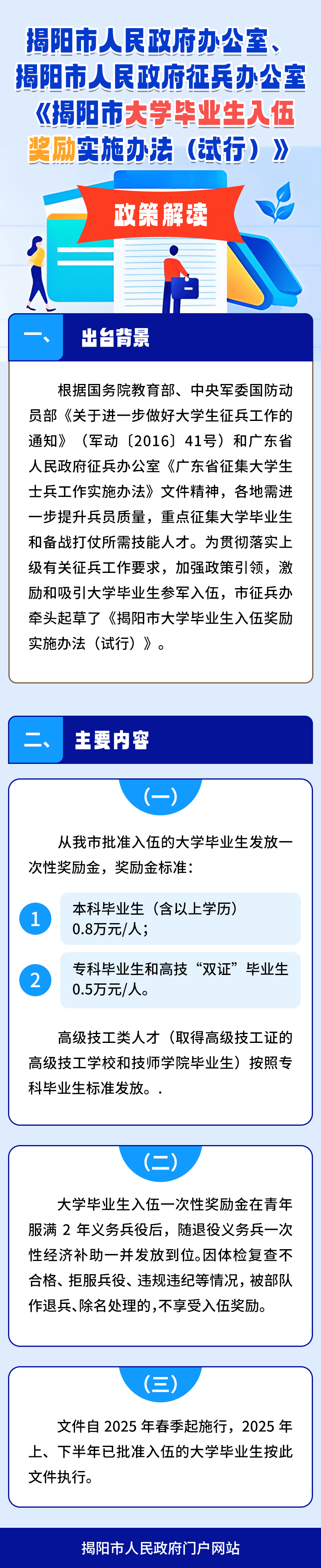 揭阳市人民政府办公室、揭阳市人民政府征兵办公室《揭阳市大学毕业生入伍奖励实施办法(试行)》政策解读
